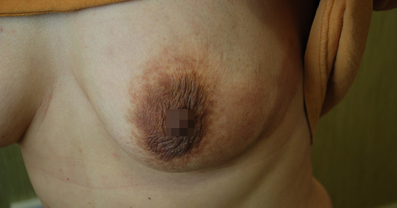 증상 부위가 유륜을 넘어 확대되고